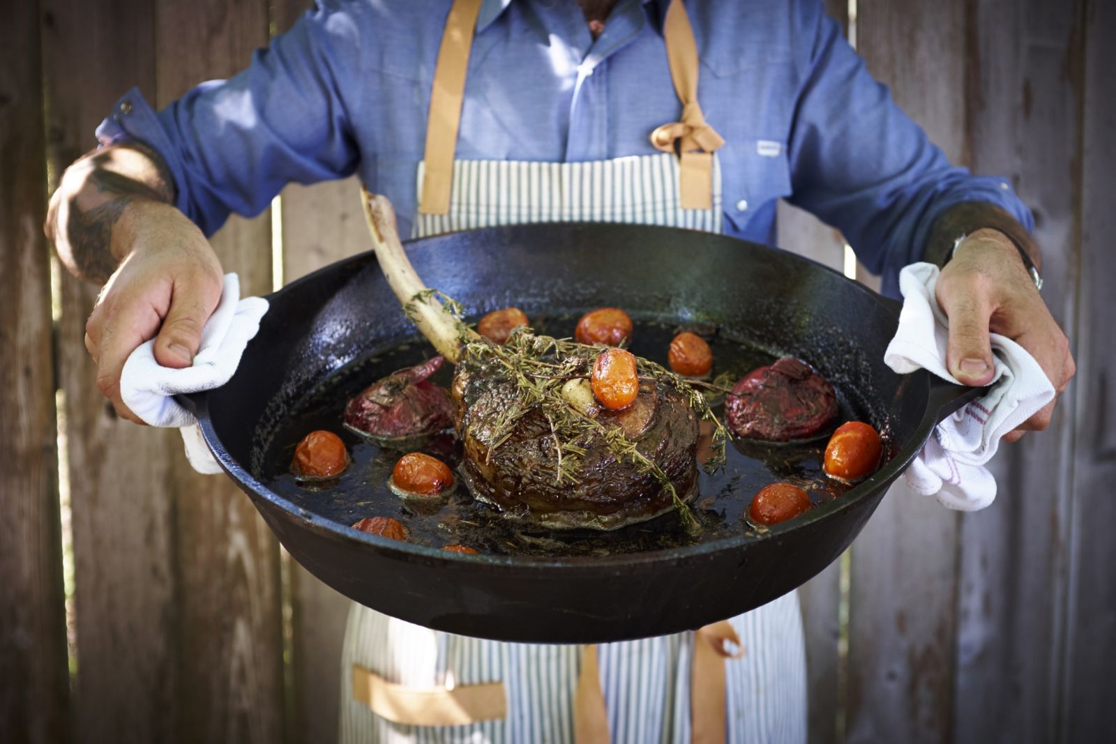 Để làm chín phần thịt theo cách thông thường nhất là lò nướng thì trước tiên phải áp chảo qua một lượt (large frying pan first) mà không cần dầu hay bơ gì cả. Sau đó bỏ lò với nhiệt độ 200 độ C trong 15 phút sẽ ra nhiệt độ tâm miếng thịt độ dầy 5cm tầm Medium-rare (58ºC). Riêng phần thịt này khi nướng xong phải để em ấy nghỉ 10-15 phút trước khi ăn để nhiệt độ giữa xương, giữa các cơ thịt và mùi vị được phân bổ đều.